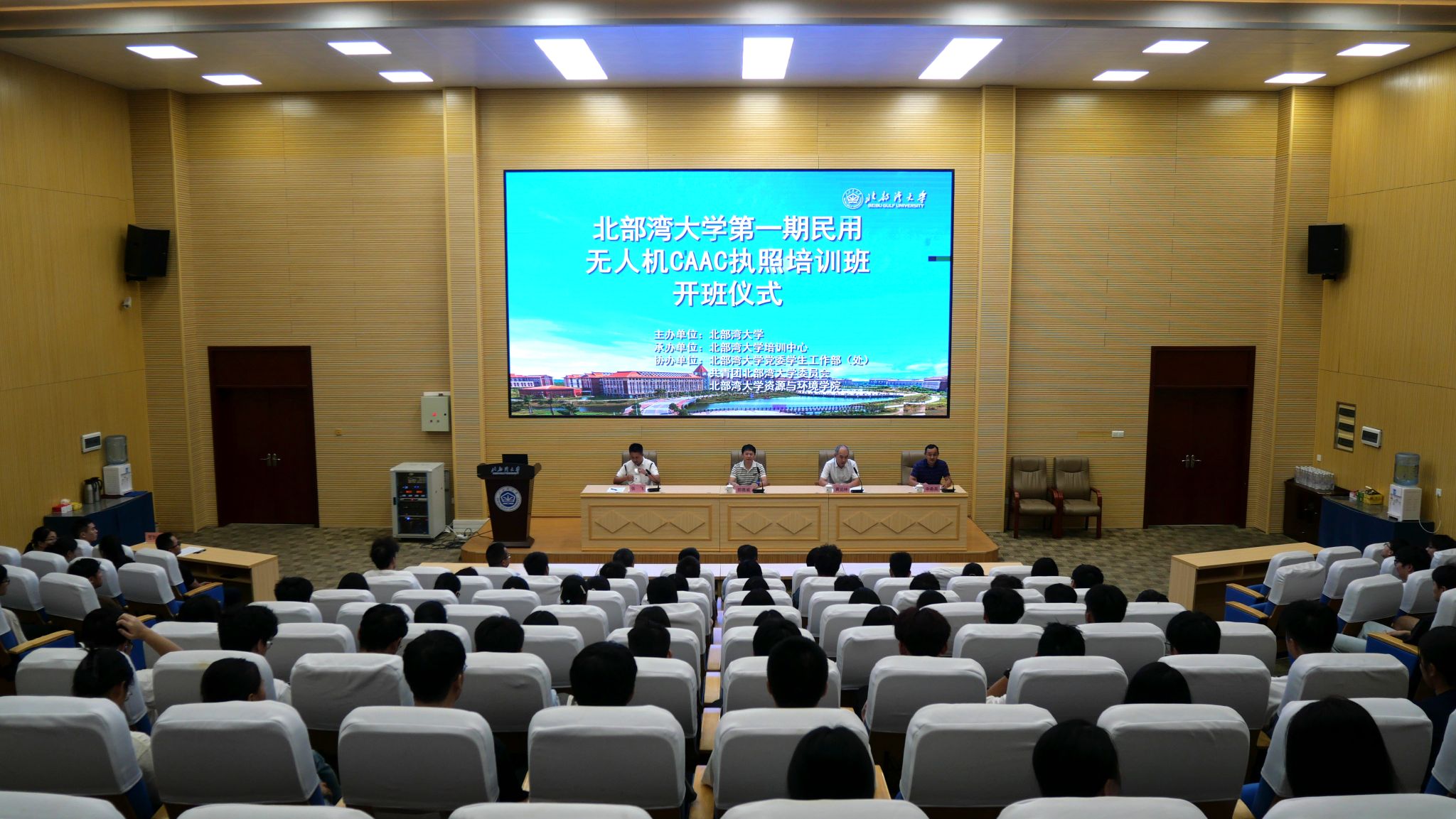 2024年10月11日,北部湾大学第一期民用无人机CAAC执照培训班在北部湾大学12号教学楼210报告厅顺利开班。北部湾大学党委学生工作部(处)部长(处长)郑德威,北部湾大学继续教育学院院长、培训中心主任黄远林,北部湾大学资源与环境学院副院长申希兵出席开班仪式并讲话,北部湾大学团委副书记、创新创业学院副院长张飞主持会议。无人机培训相关工作人员以及120名学生参加会议。