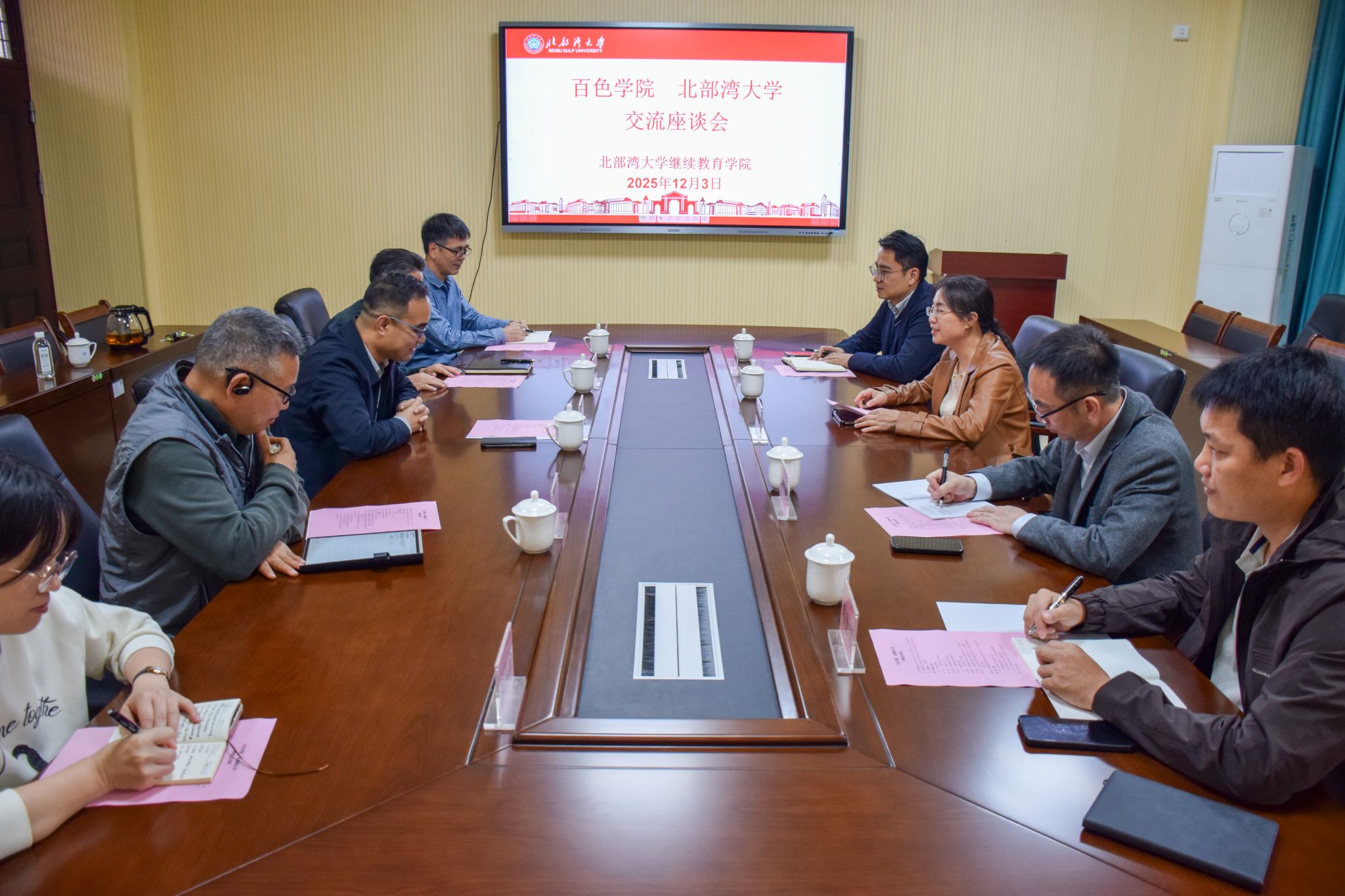 2025年12月3日下午,百色学院党委常委、副校长刘芳带队到北部湾大学开展调研交流。北部湾大学党委常委、副校长马秀明接待刘芳并参加座谈。交流座谈会在北部湾大学国际交流中心大楼105会议室进行。