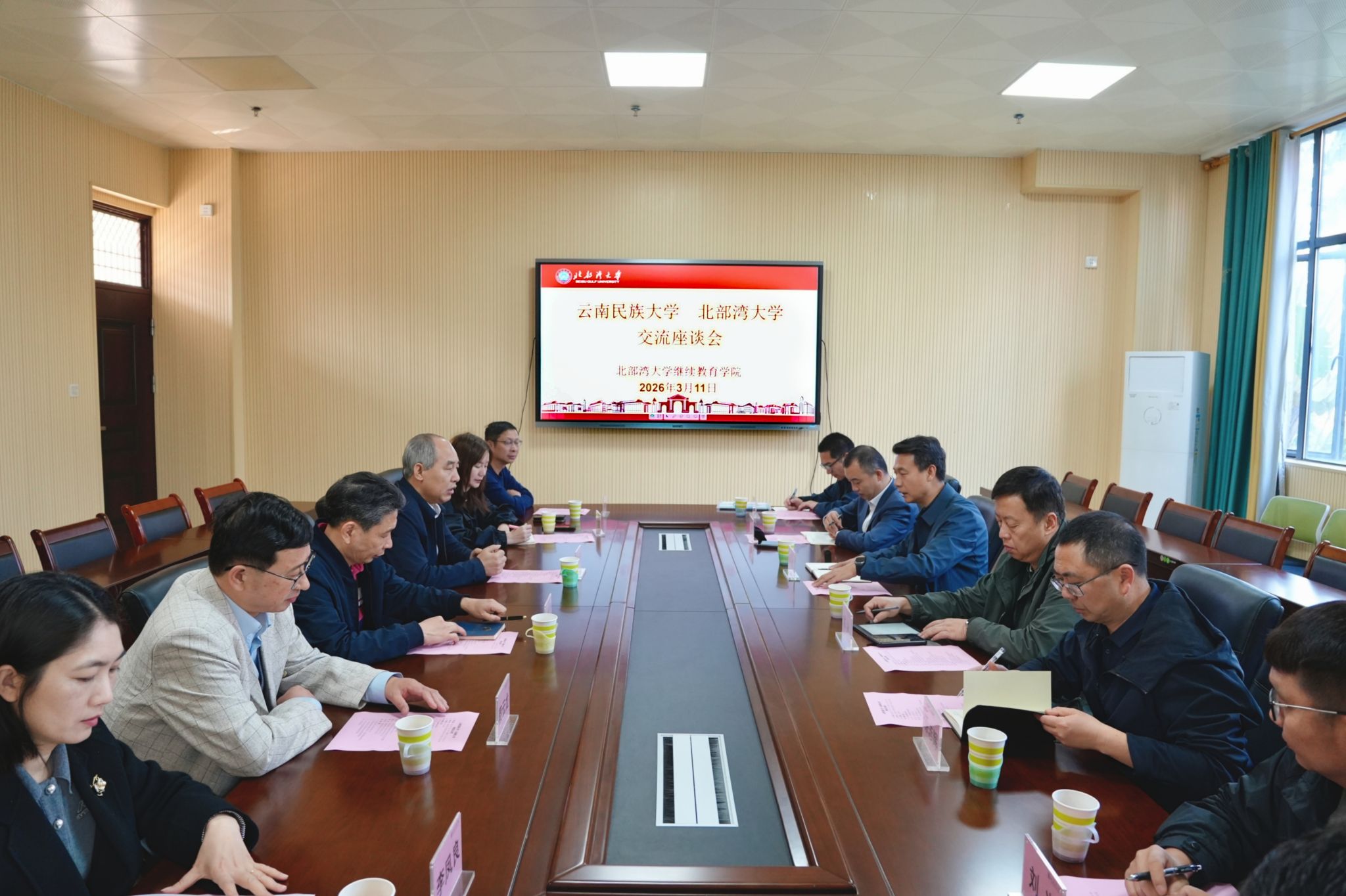 3月11日上午,云南民族大学继续教育学院院长许国一行5人到北部湾大学继续教育学院调研交流。座谈会在国际交流中心大楼105会议室举行,由北部湾大学继续教育学院院长黄远林主持,副院长封彬贤及相关科室、项目负责人参加。