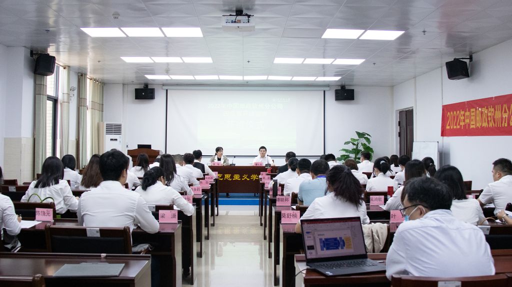 2022年10月12日上午,2022年中国邮政钦州分公司四级领导培训班在我校马克思主义学院201教室开班。本次培训为期3天,培训的内容涵盖了4D团队导力、疫情长期共存下的经济形势等模块,共计35名学员参加培训。