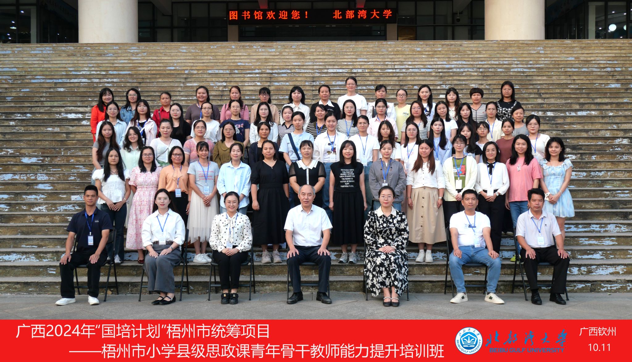 2024年10月11日,广西2024年“国培计划”梧州市统筹项目——梧州市小学县级思政课青年骨干教师能力提升培训班在北部湾大学12号教学楼210报告厅顺利开班。