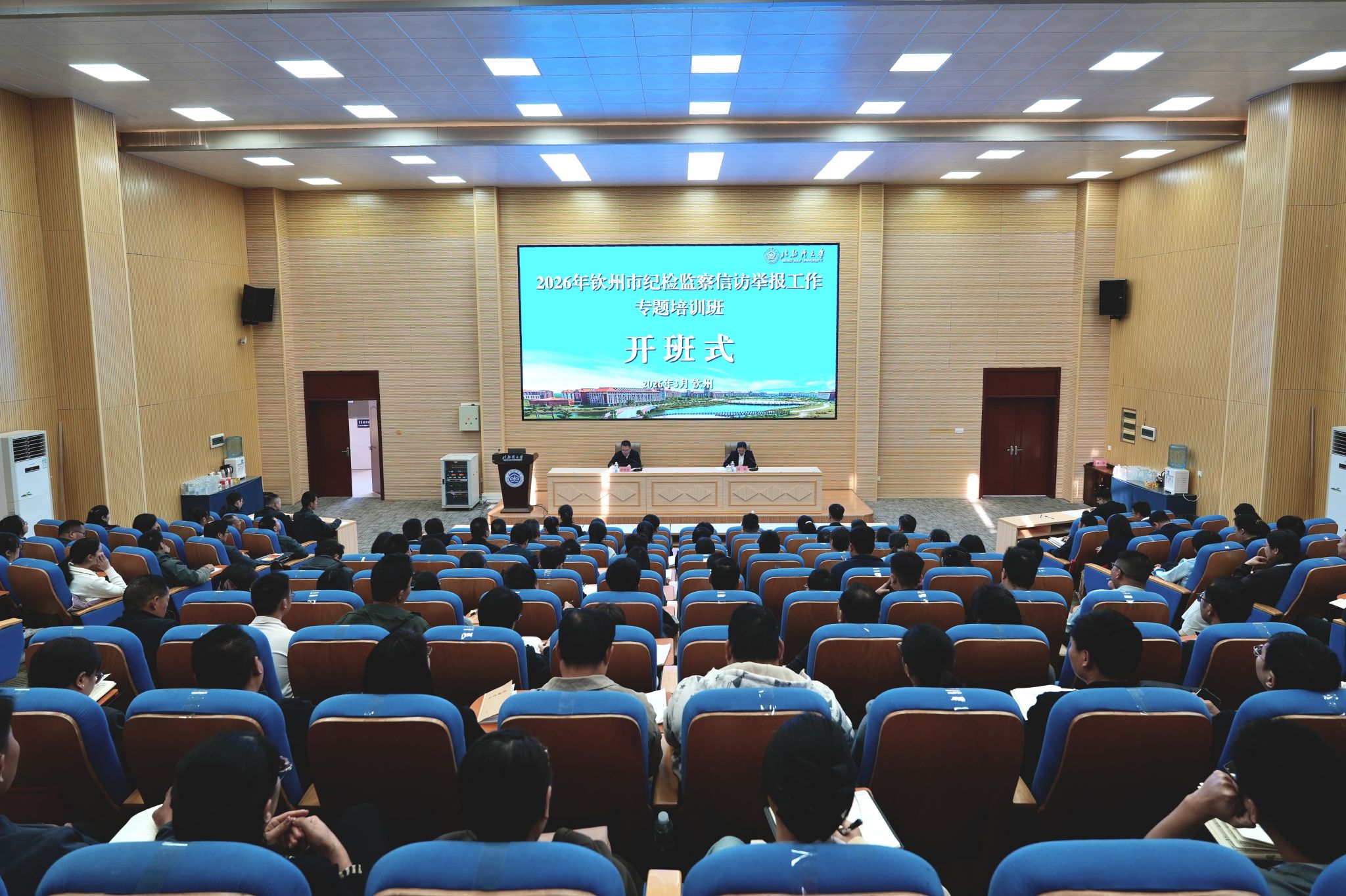 2026年3月12日, 2026年钦州市纪检监察信访举报工作专题培训班在北部湾大学12号教学楼210报告厅顺利开班。本次培训为期3天,共有130人参加此次培训。