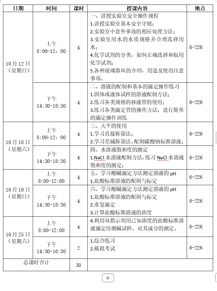 2025年下半年化学检测专项职业能力考核培训班课程表