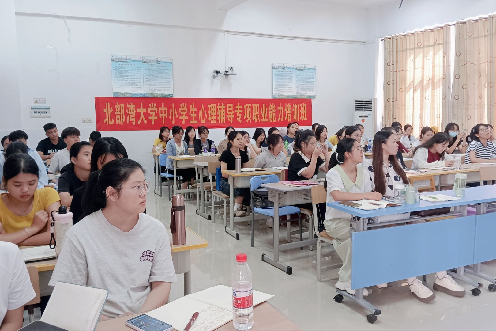 北部湾大学第五期“蔚蓝梦想”中小学生心理辅导专项职业能力培训班,于2025年10月18日正式开班!本次培训全校共有62名大四的家庭困难学生(含自费学生)参加此次培训。